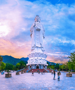 14h30-15h00: Xe và hướng dẫn viên đón quý khách tại khách sạn hoặc điểm hẹn ở Đà Nẵng bắt đầu hành trình thăm quan chùa Linh Ứng Bãi Bụt – ngôi chùa lớn nhất của Đà Nẵng, chiêm ngưỡng Tượng Phật Quan Thế Âm Bồ Tát cao nhất Việt Nam 67m.